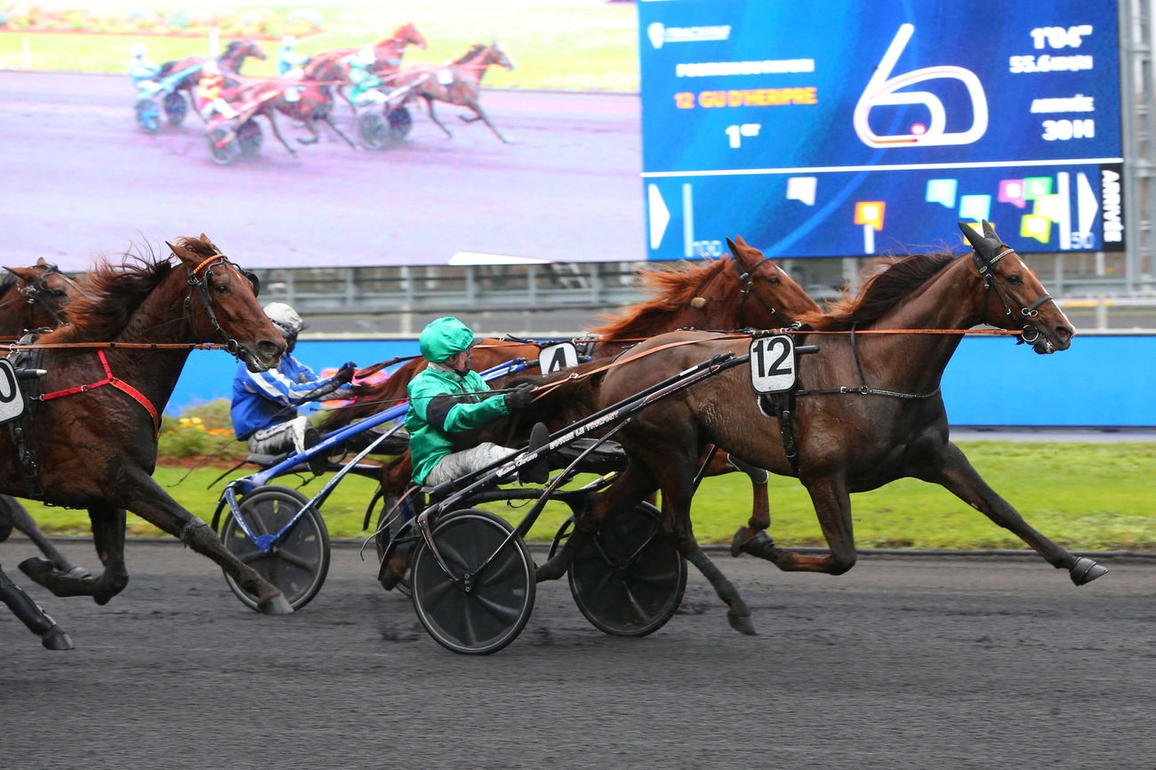 Une victoire de bon Gu ![]() Deuxième des Critériums des 3 et 4 ans, Gu d’Héripré reste peut-être cependant le meilleur 4 ans français. A quinze jours du Critérium Continental, qui validera de précieux passeports pour le Prix d’Amérique, le poulain entraîné par Philippe Billard a prévenu sa génération, en enlevant son quatrième semi-classique de l’année, qu’il espérait bien être du voyage à la fin du mois de janvier. Dans le sillage de Galius, qui se frottait cette fois aux meilleurs tout en restant invaincu en douze productions, Franck Nivard a longtemps fumé la pipe pour dominer au bout de la cendrée un nouveau venu dans cette catégorie qui se comportait dignement, même s’il reculait au troisième rang sans pouvoir repousser l’assaut final de Gelati Cut de retour en France après une honorable campagne italienne. Gamble River et Girolamo suivaient ensuite. Gu d’Héripré inscrit son nom au palmarès de ce Prix Octave-Douesnel (Grp. II) au-dessus de celui de Face Time Bourbon, lauréat l’an passé. Ce crack qui l’avait devancé dans le Prix Marcel-Laurent (Grp. II) il y a un mois et qu’il défiera à n’en pas douter tout au long de l’hiver.