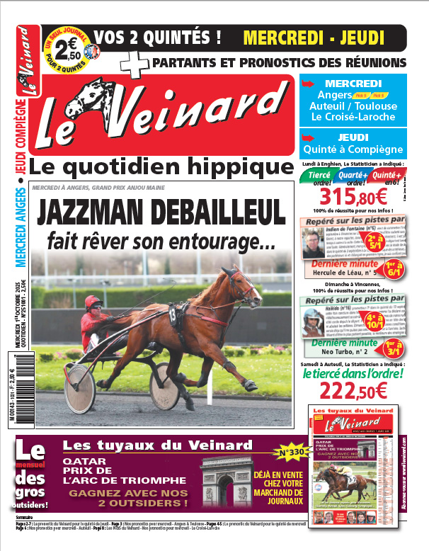 Eadshot Josselyn double la sanction ![]() Ils s’appelaient Gustafson ou Ugolinast. Ils étaient inondés de suffrages dans le Quinté ce mercredi. Mais nos amis étrangers devront s’y résoudre… le Prix de Villers-Cotterets, une course européenne pour les 6 et 7 ans, sourit généralement à l’élevage français. Produit de The Best Madrik et de Vezia Josselyn, élevé par l’écurie Yvan Bernard et désormais sous les couleurs de l’écurie Leomy, Eadshot Josselyn a réussi à lui seul à les ombrager en remportant son deuxième Quinté en moins d’un mois. Une performance à mettre à l’actif de Yoann Lebourgeois qui, à deux reprises, a donné le parcours idéal à son associé bien au chaud côté corde. Jean-Michel Bazire, qui avait lancé le premier le sprint à l’intersection des pistes avec Equinoxe, devenait un éphémère leader vite éconduit à mi-ligne droite par le représentant de l’entraîneur Nicolas Bridault. Effigie Madrik, la plus riche de la course et animatrice, subissait mais ne rompait pas pour conserver la troisième place devant Eminent d’Orgères qui a longtemps fait illusion pour les accessits et… Ugolinast, une déménageuse italienne (meilleur chrono sur le parcours des 2100 m) qui sauvait les meubles.