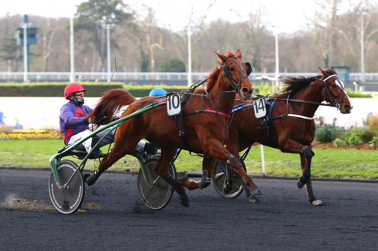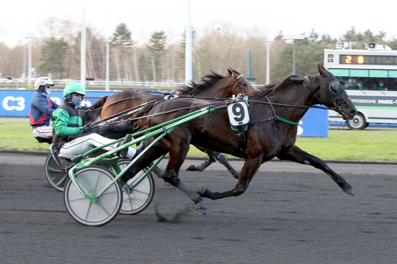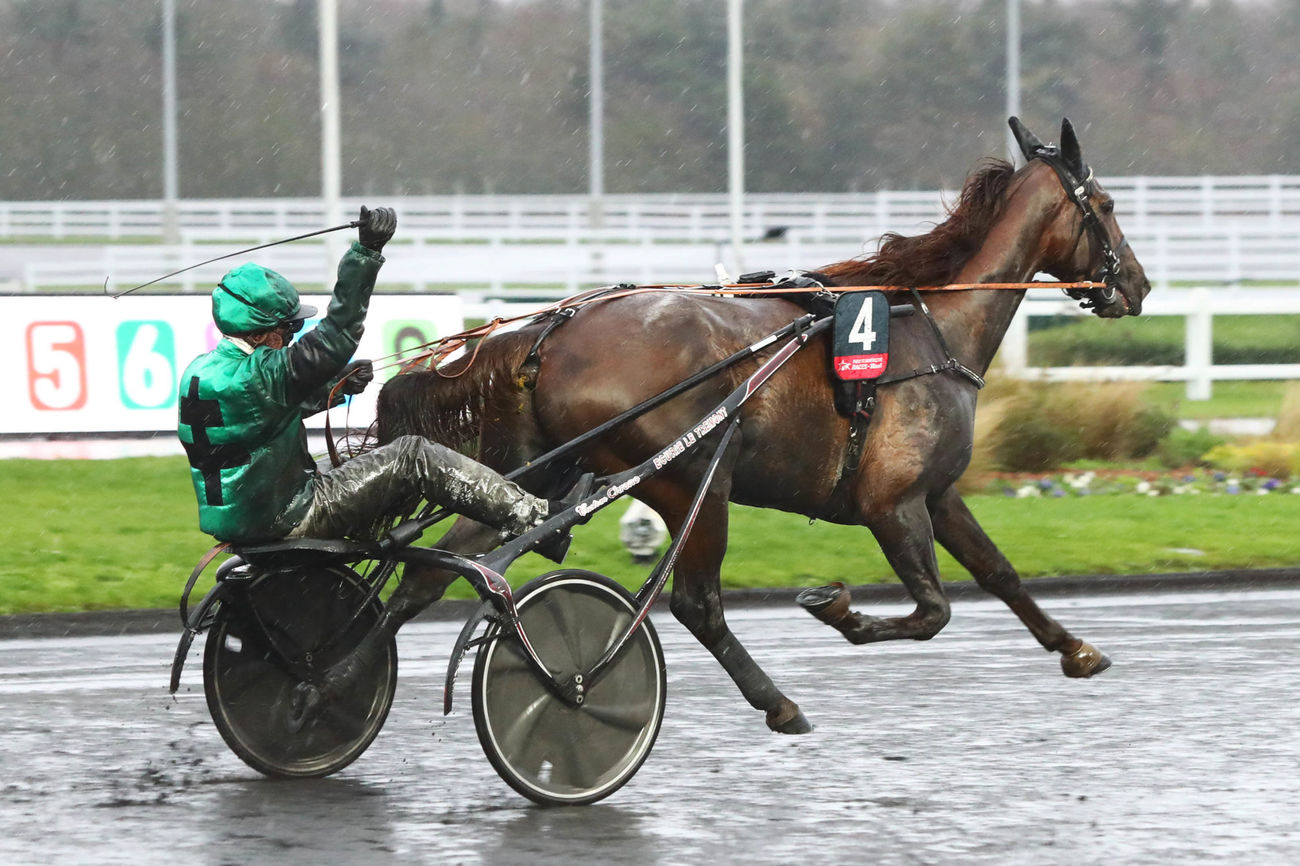 Même si quelques-uns des meilleurs 4 ans européens convergeaient vers Vincennes, les Scandinaves en profitant pour distiller sur Paris une météo qui leur est coutumière, Gu d’Héripré faisait face, avec ce Critérium Continental, à sa meilleure opportunité du Meeting pour oblitérer son passeport vers le Prix d’Amérique et enlever son premier Groupe I. L’expérimenté Franck Nivard, qui avouait néanmoins une once de pression, n’a pas tremblé même s’il lui fallut virer en quatrième épaisseur dans le tournant final pour venir cueillir l’étonnante Goldy Mary et le tenace Go On Boy. Aetos Kronos, reculant sans cesse dans la montée et accrochant de surcroît une roue de son sulky à celle d’un adversaire à l’entame de la ligne droite, ressurgissait en trombe pour s’inscrire quatrième du Quinté devant Power. Autre épreuve qualificative, mais adressée cette fois aux 5 ans, le Prix Ténor de Baune (Grp. II) aura pour sa part promu comme l’an passé Laurent-Claude et Alexandre Abrivard qui poursuivent au passage leur festival. Après Excellent, Féerie Wood sera leur représentante dans la belle de fin janvier suite à sa victoire par k.o. sur Feydeau Seven qui a quelque part jeté l’éponge en propulsant au sommet de la montée sa principale rivale sur le devant de la scène. Alexandre partira donc cette fois à la conquête du joyau hippique sous sa propre casaque. L’aboutissement pour toute l’écurie d’une année en tout point féerique. |
