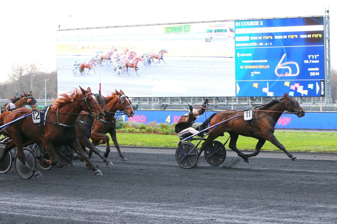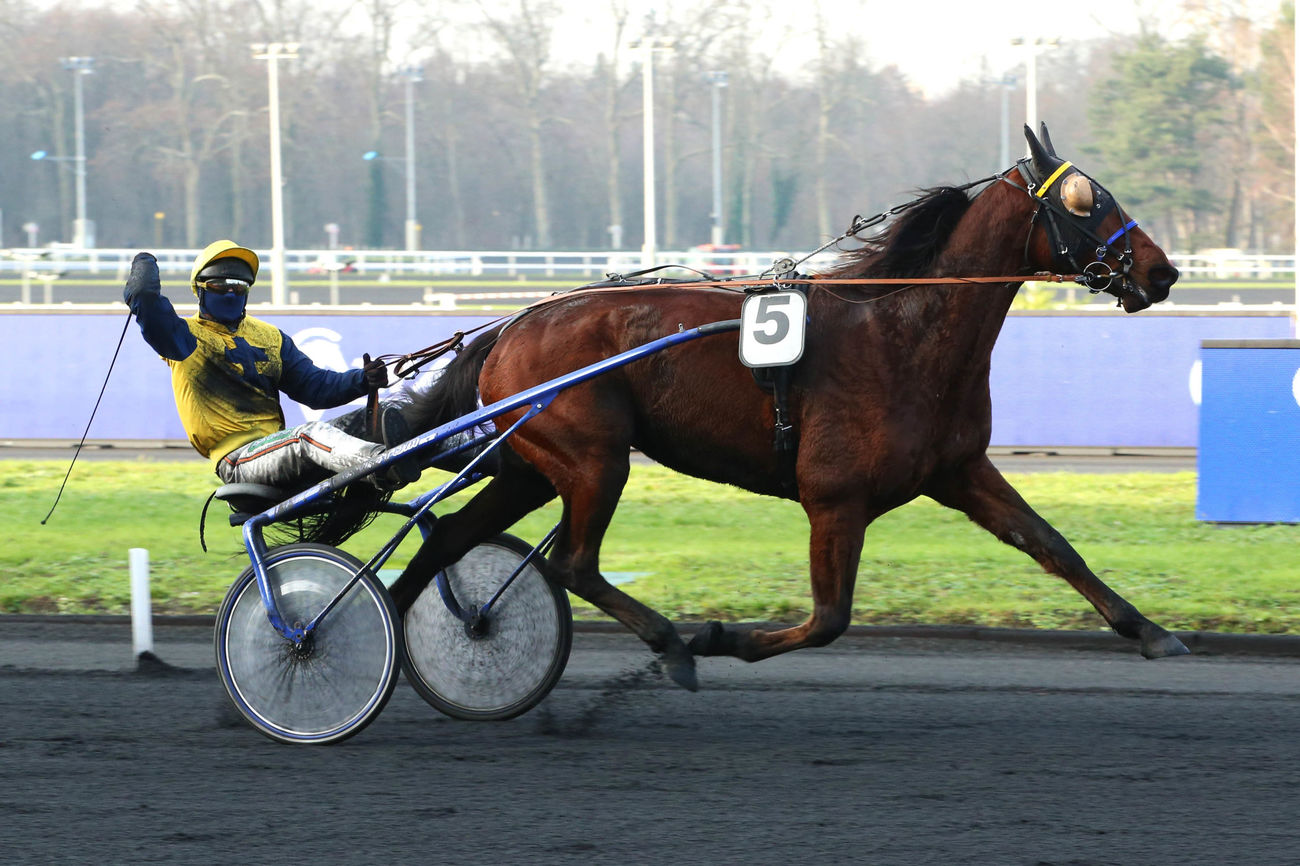 La diplomatie selon Théo Duvaldestin ![]() Le 7 décembre, dans le Prix des Alpes, Diplomate d’Am avait déjà été le seul à pouvoir devancer Dorado Bello, pourtant proclamé favori du Prix du Croisé-Laroche, le traditionnel Quinté d’une nouvelle ère. Chez les Duvaldestin, on aime commencer l’année comme on l’a finie. Avec Théo dans le fiacre, qui affichait déjà plus de 30% de victoires avec ses partenaires en décembre, sa mission s’est vue simplifiée, d’autant que son plus redoutable adversaire perdait une trentaine de mètres dès la volte. Cependant, face au sulky d’or 2020, la vigilance reste de mise et il en fallut au jeune pilote pour garder une tête sur le poteau face aux finishs acérés et conjoints de Dorado Bello, revenu du diable vauvert par la voie de la corde, et de Comte des Tithais bien plus tranchant sans ses fers. Dimo d’Occagnes et Diablo de Caponet suivaient un peu plus loin, Caviar du Vivier échouant du strict minimum pour un billet parmi les cinq premiers. Il faut faire la fine bouche pour se priver de « caviar » en cette tumultueuse période.