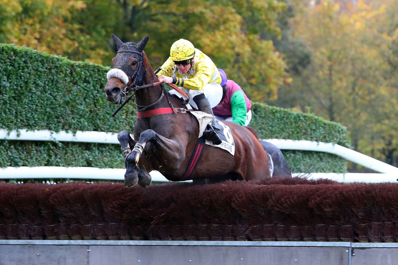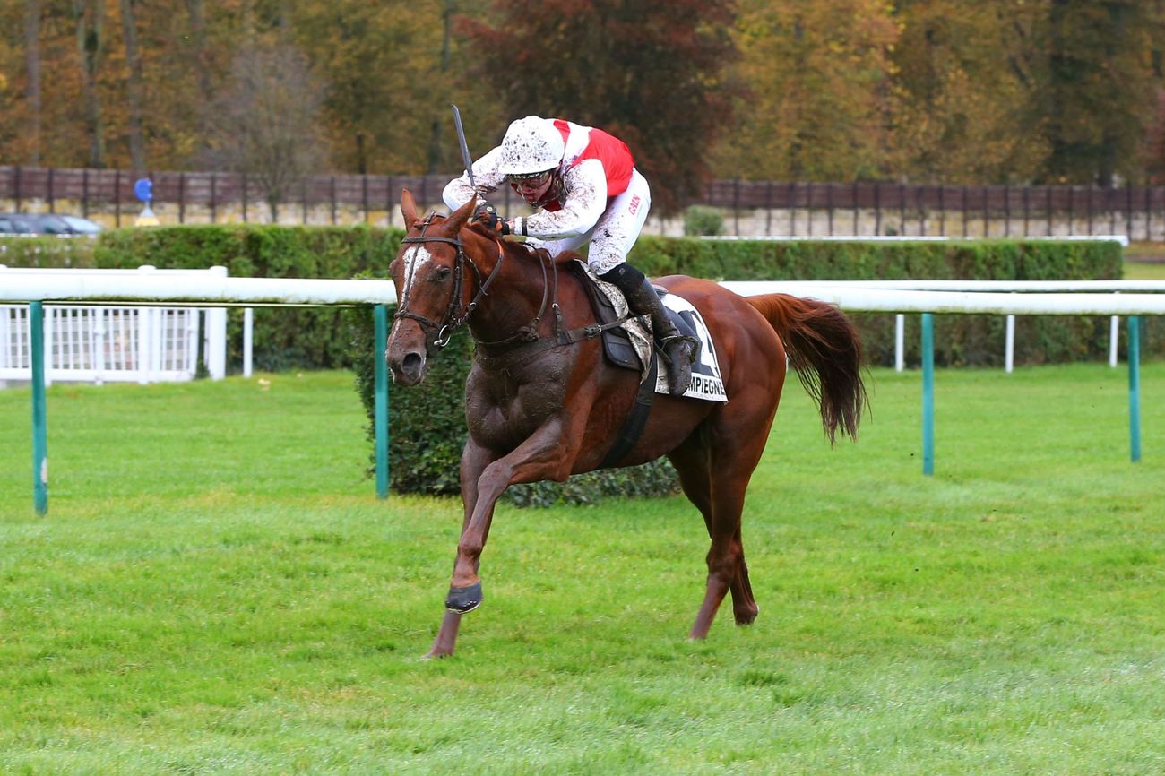 Amour du Mathan tient enfin son Groupe ![]() Vainqueur du Prix The Stomp, une listed visant à faire monter la pression avant le grand rendez-vous du Putois, Roi Mage, un peu comme chez lui dans l’Oise, a d’emblée voulu montrer les dents, samedi, dans le Grand Steeple-chase de Compiègne. Après un départ sur les chapeaux de roue, l’élève de Luc Gabeur n’a par la suite jamais réduit la cadence donnant à ce Groupe II, disputé pour la première fois sur 4100 mètres (au lieu de 4900m) un indéniable coup de fouet. Cependant, Amour du Mathan l’avait toujours chatouillé en compagnie de Corazones. Ce n’est qu’entre les deux obstacles que Pierre Dubourg passait à l’action pour se mettre définitivement à l’abri des retours conjugués de Flying Startandco et de Grandeur Nature. Le fils de Saint des Saints, évoluant pour la casaque de Jean-Marie Baradeau, trouve ainsi la récompense à sa régularité sur l’hippodrome de Compiègne en s’adjugeant le premier Groupe de sa carrière. Arnaud Chaillé-Chaillé, son excellent mentor, lui, ne les compte plus. Il était déjà du reste le tenant du titre de ce monument de l’obstacle avec Matfog.