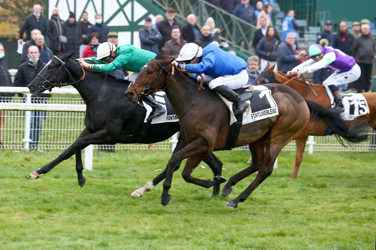 Have Dancer trouve enfin l’ouverture ![]() Emmuré vivant le 9 juillet à Clairefontaine, pris dans la tenaille d’un peloton compact avant de conclure de remarquable manière le 7 octobre sur ce parcours des 2000 mètres de Saint-Cloud,… c’était à se demander quel sort avait été jeté sur le pauvre Have Dancer qui remonte de fait souvent dans le camion sans avoir eu l’impression de courir. Rageant pour tout l’entourage qui misait une nouvelle fois, mardi au Val d’Or, sur Mickaël Barzalona pour inverser la courbe. Après un fructueux déplacement à Marseille couronné de six succès, ce qui lui permettait du reste de reprendre les commandes à Maxime Guyon dans la course à la cravache d’or 2021, l’intraitable jockey allait enfin crever l’écran à trois cents mètres du but pour démunir la courageuse Astrologia d’un titre qui lui semblait pourtant promis dans ce Prix de la Vallée des Chevreuses. Ommeel, troisième, ne sait pas décevoir et devançait franchement Akyo et King Cobra. Le représentant de l’Ecurie Normandie Pur-Sang renoue donc avec un succès qui le fuyait depuis deux. En fils de Le Havre, avec un terrain lourd en guise de vent en poupe, on finit toujours par arriver à bon port.