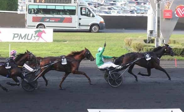 Headscott fait de Bordeaux son espace ![]() Co-favori du Quinté sur l’hippodrome de Bordeaux, mercredi, Headscott s’est montré intraitable et a fini par écoeurer Hastronaute, vainqueur du Critérium des 4 ans (Grp. I), qui lui rendait toutefois 25 mètres. Pourtant, les circonstances de course n’ont guère été favorables au représentant d’Arnaud Chavatte qui, après un départ moyen, a été contraint de passer le peloton en revue en troisième épaisseur. Sautant sur son porte-bagages, le partenaire de Matthieu Abrivard se faisait gentiment ramener sur les premiers et l’on pouvait penser, en face, que le représentant de Yannick Henry avait fait le plus dur pour aller cueillir le 1001ème succès du patron. Que nenni ! Après avoir déposé Guimauve Danover au bout de la ligne opposée, Headscott redonnait un coup de collier, mettait très vite en difficulté son pire rival, et se détachait pour finir en roue libre loin devant Falco des Rochers et Hastronaute qui tirait la langue pour conserver le dernier accessit que convoitait le gros outsider Fûté Burois. Impressionnant, Headscott garde ainsi son invincibilité au Bouscat en trois participations girondines et enquille un second Quinté deux mois seulement après sa démonstration à La Capelle.