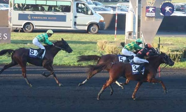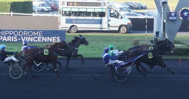 Joumba de Guez propulse l’écurie Vautors sur les toits de Paris ![]() Il y a dix ans, Quoumba de Guez enlevait le Prix Jean-Luc Lagardère (Grp. II) à Enghien. Depuis ce 17 décembre 2023, la championne de l’écurie Vautors peut aussi se targuer d’être la mère de Joumba de Guez, une petite pouliche de 4 ans qui a offert à l’écurie Vautors et à René Guézille un premier Groupe I dans le Temple du Trot après son lumineux succès ce dimanche dans le Prix Jag de Bellouet, Qualif 1 au Prix de Cornulier. On a même longtemps cru que Jadrius de Guez avait retrouvé ses jambes d’antan, mais pour le partenaire d’Alexandre Abrivard il y eut cinquante mètres de trop, doublement devancé tout à la fin par sa compagne d’entraînement de l’écurie Bazire et par l’extrême outsider Jewelcandle Fac avec qui Anthony Barrier a fini à cent à l’heure en pleine piste et a même cru l’espace de quelques secondes triompher à près de 100/1. Comme on dit à ParisLongchamp, Eric Raffin a su conserver un petit nez pour qu’au Pays des « Guez » Joumba rejoigne le classique Kazire, victorieux du Grand Critérium de Vitesse de la Côte d’Azur (Grp. I) en 2006. Cependant, Jean-Michel Bazire mettait immédiatement fin à toute spéculation, Joumba de Guez ne sera pas au départ du Cornulier. Affaire à suivre !
