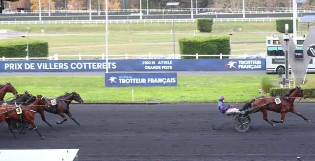 Retour fructueux à Paris pour Lovino Bello ![]() Parmi les cracks de sa génération depuis l’âge de 2 ans, si ce n’est le meilleur, Lovino Bello a enlevé, samedi, le Prix Octave Douesnel (Grp. II), ultime préparatoire au Critérium Continental. Pourtant, l’associé d’Eric Raffin ne s’est pas simplifié la tâche. A huit cents mètres de l’arrivée, il lui a fallu prendre ses responsabilités et contourner nez au vent le peloton. Pas facile d’autant plus que son camarade d’écurie Falco Killer Gar envisageait lui aussi le succès. Un face à face s’engageait, mais le dernier nommé, sous la pression de « Lovino » se perdait totalement dans ses allures peu après la mi-ligne droite. Lombok Jiel terminait fort, mais à distance, tout comme Phantom Express qui, ferré, a réalisé des débuts sur le sol français prometteurs. Frank Gio, dominé dans le tournant final, s’accrochait à la quatrième place que revendiquait First of Mind. Après son semi-échec à Solvalla dans la Finale de l’UET, le dauphin de Lancier du Goutier dans le Critérium des 4 ans, est donc revenu à Paris au mieux de sa forme. Reste à savoir s’il n’est pas meilleur sur le parcours classique… alors que le « Continental » est un exercice de vitesse. Réponse sur la cendrée le 21 décembre.