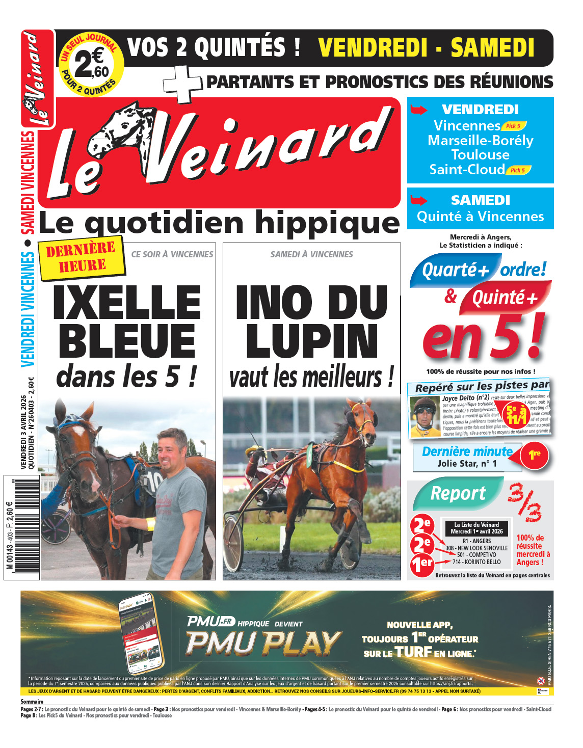 R1 VINCENNES  Quinté Pick5 13h25 8