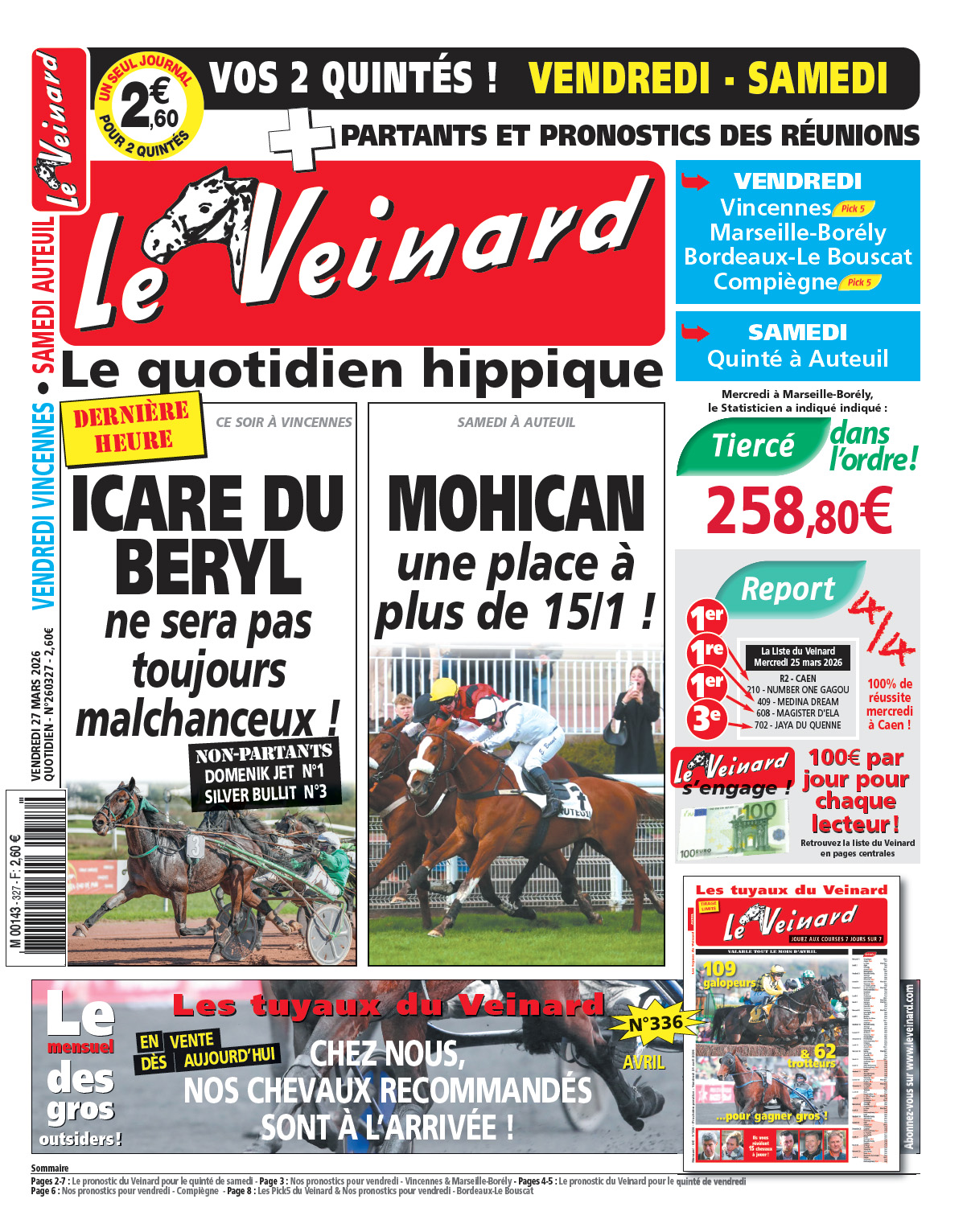 | 5 | VADENI | 6 | M | 7 | SOUMILLON C. | ROUGET (S) JC. | 59.5 | 5p 4p (22) 2p 3p 1p 1p 1p 5p (21) 3p 1p 1p | 1.8/1 | ||