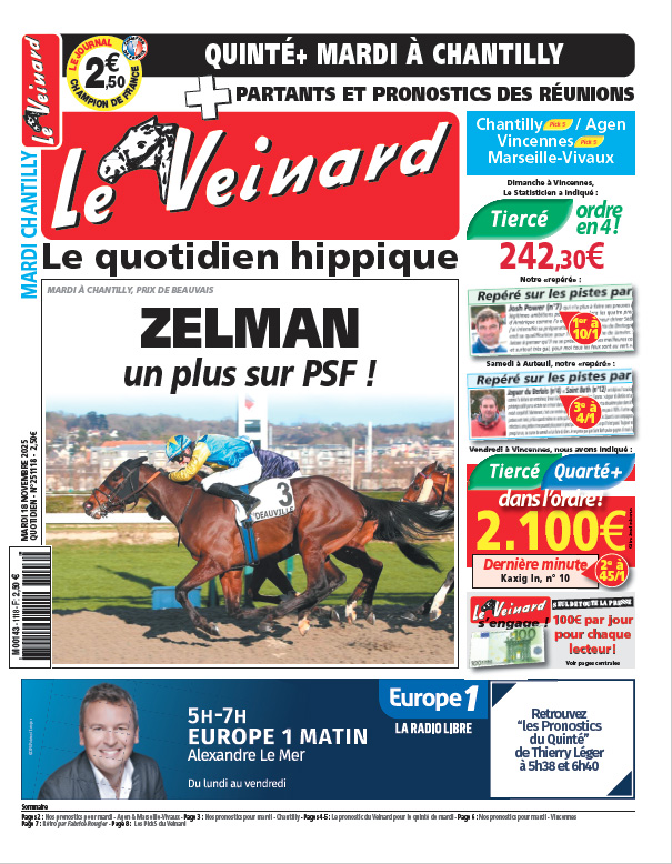 Le Veinard SMS Pour chaque QUINTE+ recevez par sms le pronostic exclusif du veinard + le repéré + la dernière minute + l'interdit, où que vous soyez, dès la veille de la course à 19h. En cas de problème de réception, vous pouvez consulter le sms dans votre espace abonné sur le site Ne laissez pas passer votre chance de gagner ! → J'accède à mon Espace Abonné → Je m'abonne au Veinard SMS |